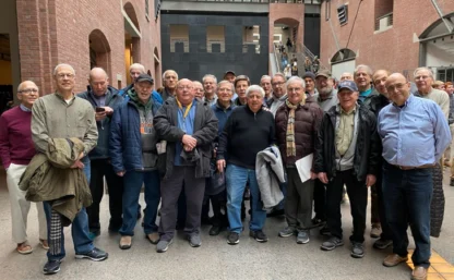 The JCC Men’s Club visited the US Holocaust Memorial Museum (USHMM) to see the new “America and the Holocaust Exhibit.” Approximately 35 members of the Men’s Club participated. We split into 2 groups each led by a docent for a 90-minute tour. Arrangements for the tour were made by Isaac Bokman, who volunteers as a volunteer at the museum.